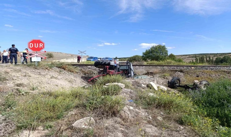 Afyonkarahisar’da hemzemin geçitten geçmeye çalışan traktöre yolcu treni çarparken, kazada ortadan ikiye bölünen traktörün sürücüsü yaralandı.