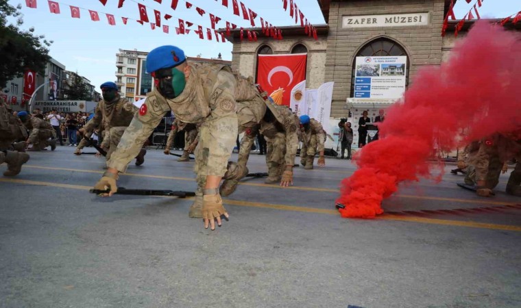 Afyonkarahisar’ın düşman işgalinden kurtuluşunun 101’nci yıl dönümü coşkulu bir törenle kutlandı. Törende dünyanın farklı ülkelerinden gelen hak oyunları topluluklarının sunduğu gösteriler ile Jandarma Genel Komutanlığı Merasim Bölüğü silahlı hareketler ve helikopter ile üzüm salkımı gösterisi ayakta alkışlandı.