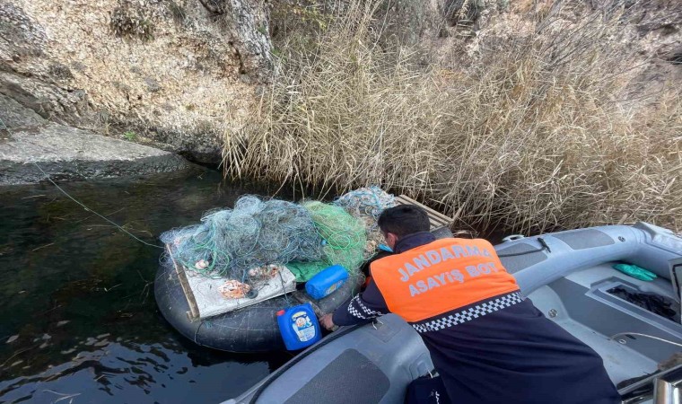 Gaziantep İl Jandarma Komutanlığı Asayiş Bot Timleri, Yavuzeli ilçesinde bulunan Fırat Nehri üzerinde önleyici kolluk devriyesi icra etti. Devriye esnasında, nehir üzerinde yasak olmasına rağmen ağ atarak balık avladığı tespit edilen E.K. isimli şahıs suçüstü yakalandı. Yakalanan şahsa ait olduğu tespit edilen 4 bin 800 metre ağ, 4 adet şişme lastik, 4 adet bot küreği, 1 adet zıpkın ve 3 adet av malzemesi ele geçirildi. Olay sırasında kullanılan malzemelere el konuldu.
