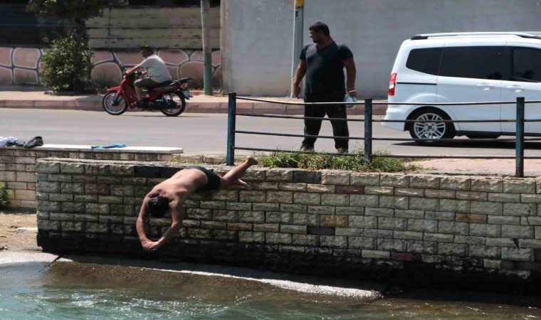 Gençler sıcak hava dalgasından kurtulmak için sulama kanallarında yüzerek serinlemeye çalıştı.