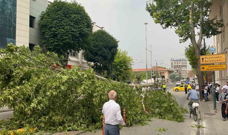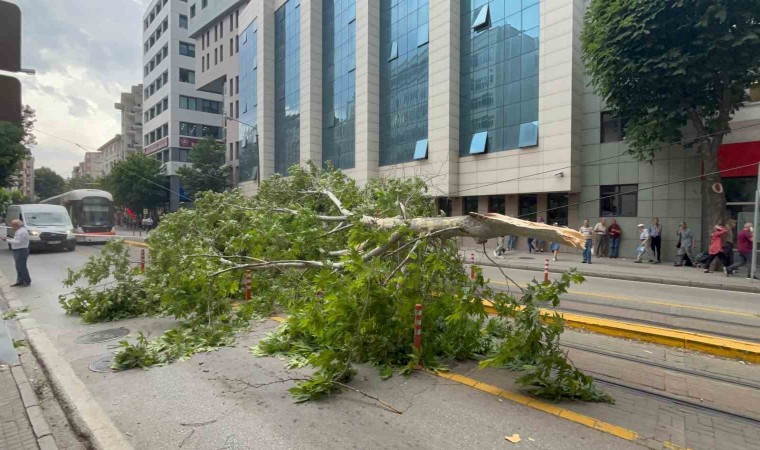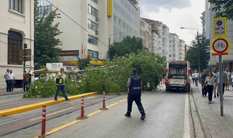 Eskişehir’de rüzgarın etkisiyle kırılan kalın ağaç dalı yola düşerken, şans eseri kimsenin üzerine gelmemesi sonucunda muhtemel facia kıl payı atlatıldı.