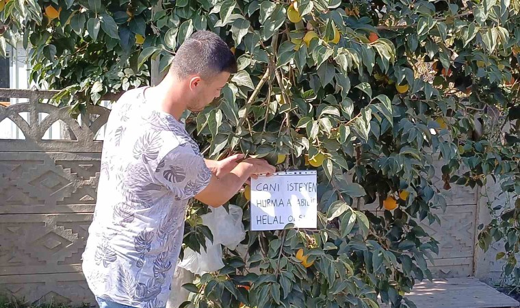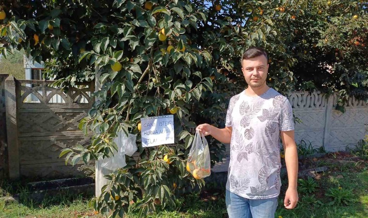DÜZCE (İHA) – Düzce’de yaşayan 25 yaşındaki genç çiftçi, ‘Canı isteyen hurma alabilir, helal olsun’ yazısını astığı Trabzon Hurması ağacının yanına poşette koyarak örnek bir davranış sergiledi. Genç çiftçinin davranışı insanlık ölmemiş dedirtti.
