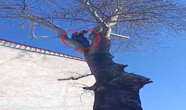 Şüphelilerden biri yakalanacağını anlayınca kedi gibi dümdüz ağaca tırmanıp polise el salladı