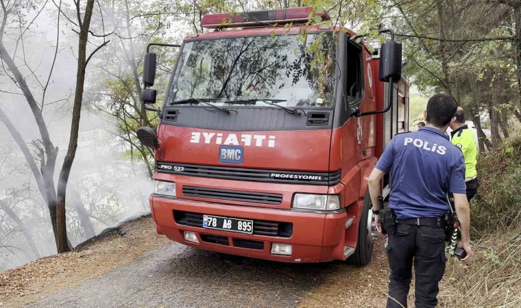 Karabük’te polis ekipleri ağaçlık alanda çıkan yangına hortumla su sıkarak müdahale ederken, itfaiye ekipleri de soğutma çalışması yaptı.