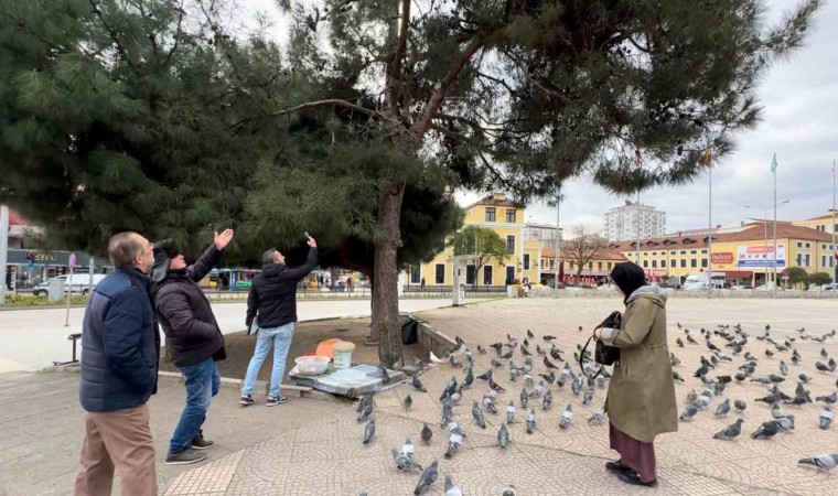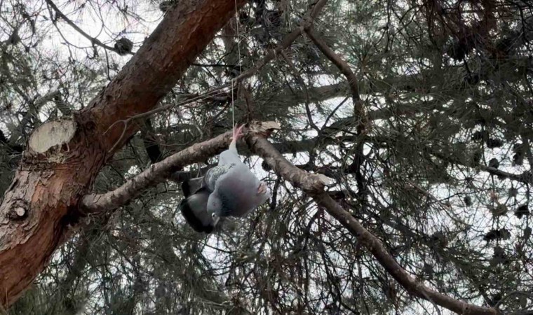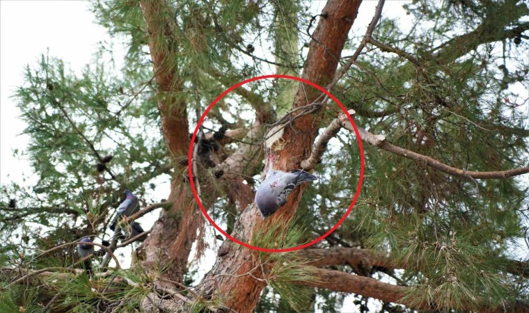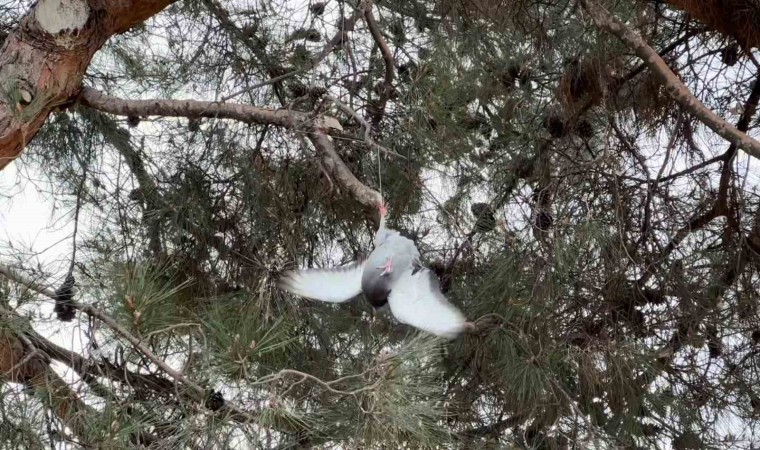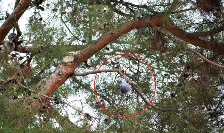 Her gün yüzlerce kuşun uğrak yeri olan Cumhuriyet Meydanı’nda ilginç anlar yaşandı. Meydandaki çam ağacında ayağına ip dolanan güvercin, ağacın dalında tek ayağından asılı kaldı. Burada kuş yemi satan Kemal Çakal, durumu itfaiye ekiplerine bildirdi. Dakikalarca kurtarılmayı bekleyen kuş için vatandaşlar seferber oldu. Bir süre sonra itfaiye ekipleri olay yerine geldi. İtfaiye merdiveni yardımıyla ağaca çıkan ekipler güvercini kurtararak tekrar özgürlüğüne kavuşturdu.