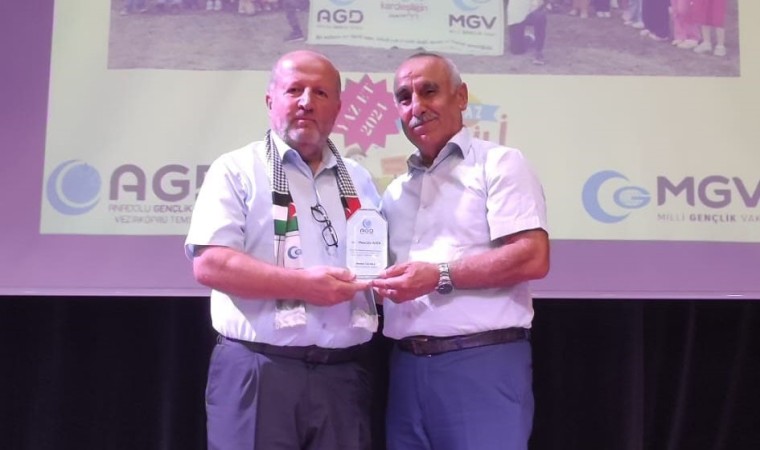 Gecede Anadolu Gençlik Derneği Vezirköprü İlçe Başkanı Ahmet Yılmaz tarafından Vezirköprü Halk Eğitim Merkezi Müdürü Mustafa Kaya’ya vermiş oldukları emekleri için bir plaket takdim edildi.