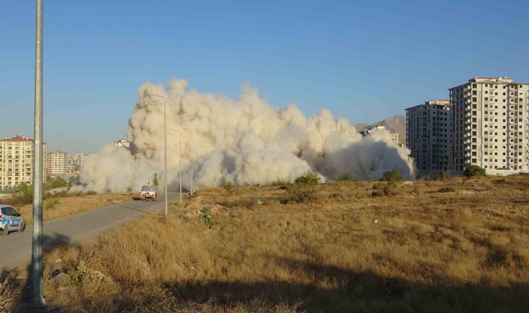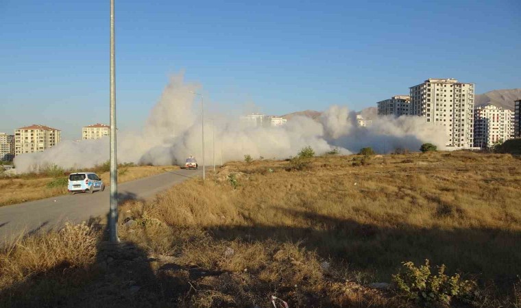 Malatya’da ağır hasarlı 2 blok daha patlayıcı kullanılarak yıkıldı. Binalar saniyeler içerisinde yerle bir oldu.
