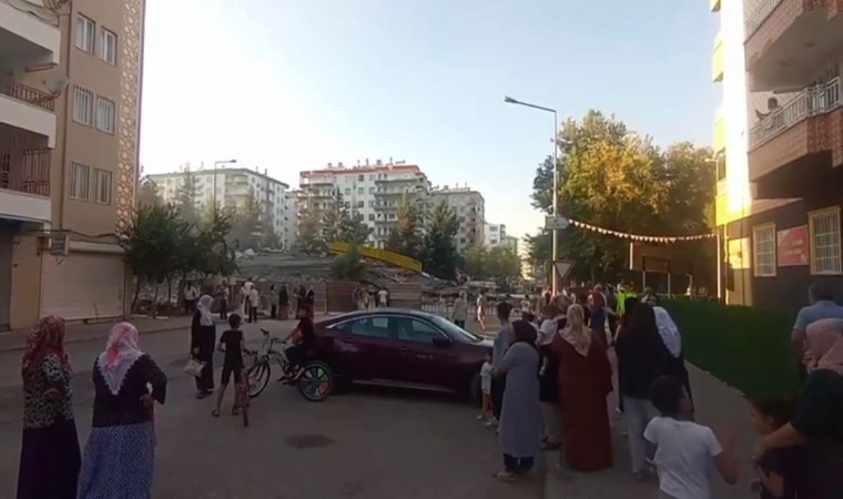 Diyarbakır’ın Kayapınar ilçesinde ağır hasarlı bir bina yıkım esnasında aniden çöktü. Mahalleli deprem olduğunu sanıp kendilerini dışarı attı.