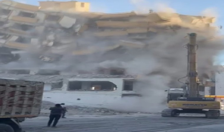 Gaziantep’in Nizip ilçesinde depremlerde ağır hasar alan binaların yıkımı devam ediyor. Yıkım çalışmaları sırasında ilçe merkezindeki 28 daireli Alpay Apartmanı iş makinesinin darbesiyle bir anda yerle bir oldu. Yaralananın olmadığı olay sonrası ortalığı toz bulutu kaplarken, çevredeki vatandaşlar panikle sağa sola kaçıştı. Binanın çökme anı cep telefonu kamerasına saniye saniye yansıdı.