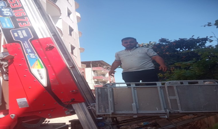 Hatay’da hasarlı binadan asansörlü nakliye aracıyla yavru köpeği kurtaran hayvansever İbrahim Göçer, davranışıyla takdir topladı.
