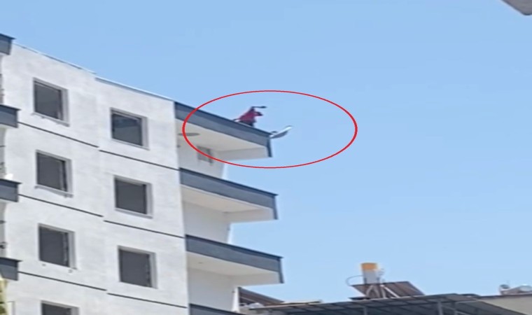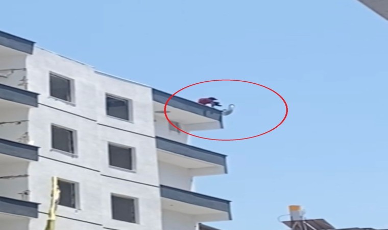 Diyarbakır’da Kahramanmaraş merkezli depremlerden sonra ağır hasar alan binanın çatı katındaki çanağı sökmek isteyen vatandaş yürekleri ağza getirdi.