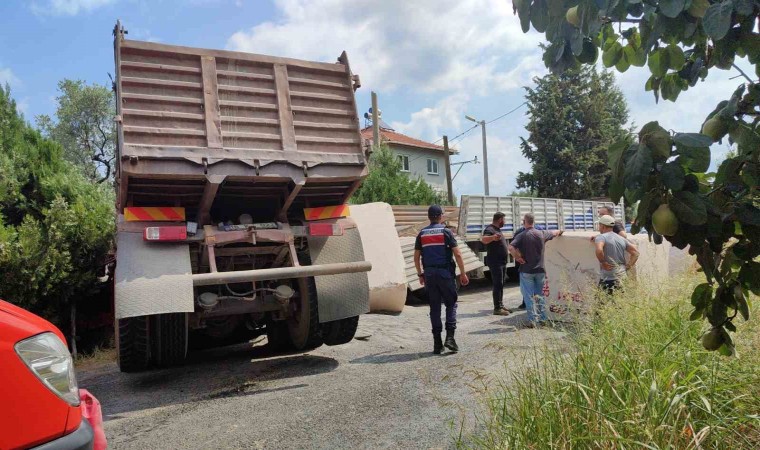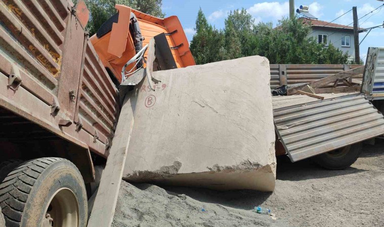 Bursa’nın Orhangazi ilçesinde blok mermer yüklü tır ile döküm kumu yüklü kamyon çarpıştı. Her iki aracın sürücüsü de sıkıştıkları yerden ağır yaralı halde kurtarıldı.