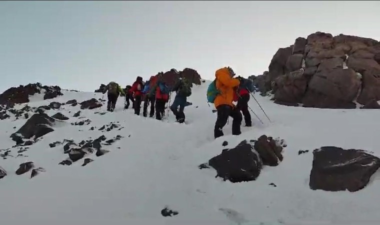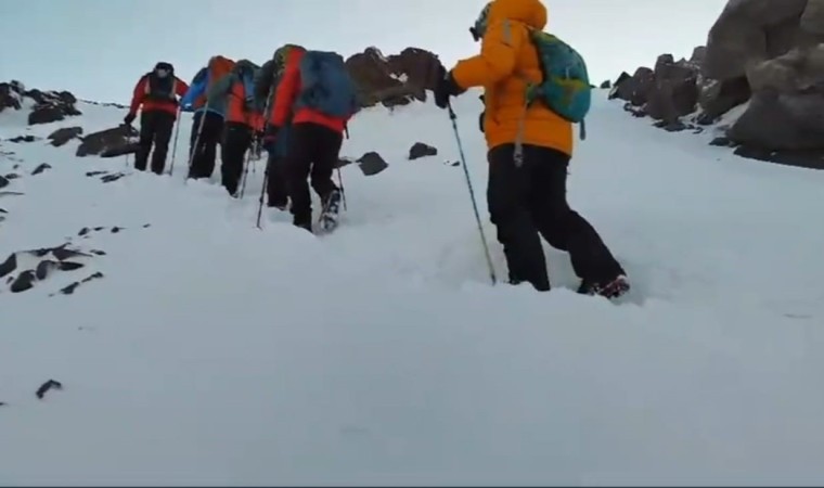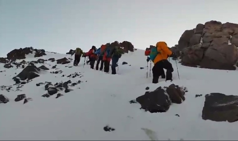 Ağrı’nın Doğubayazıt ilçesinde bulunan 5137 rakımlı Ağrı Dağı’nın yüksek kesimleri ve zirvesinde haziran ayına rağmen hala kar yağışı, fırtına ve sis etkili oluyor. Birçok dinde kutsal sayılan, terörden arındırıldıktan sonra tırmanışa açılan ve yaz-kış dağcı gruplarını ağırlayan Ağrı Dağı’na tırmanmak için harekete geçen bir grup dağcı, yerel rehber Resul Civaş eşliğinde kar, tipi ve fırtınaya rağmen zirve tırmanışı yaptı. Zorlu hava şartlarına rağmen zirveye ulaşan dağcılar, burada anı fotoğrafları çekerek bu özel anı ölümsüzleştirdiler. Dağcılar, zirvede kar manzarasının eşliğinde dinlendikten sonra inişe geçtiler.