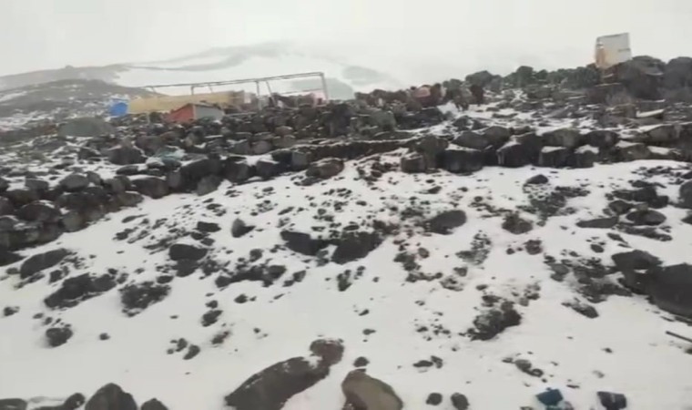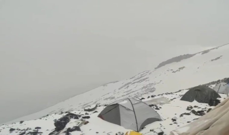 Türkiye’nin en yüksek dağı olan Ağrı Dağı eteklerinde yaz havası yaşanırken, zirvede ise adeta kara kış yaşanıyor. Yerli ve yabancı dağcılar, kar ve fırtınaya rağmen zirveye tırmanışlarına devam ediyor.