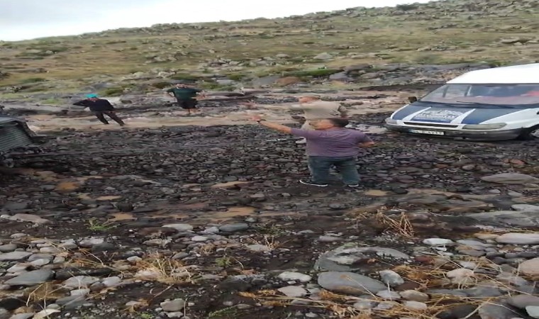 Türkiye’nin en yüksek dağı Ağrı Dağı’nda etkili olan şiddetli sağanak yağışlar, sel felaketine yol açtı. Yaşanan olayda, dağcılar ve turistleri taşıyan bir minibüs, 3 bin 200 rakımdaki yolda mahsur kaldı.