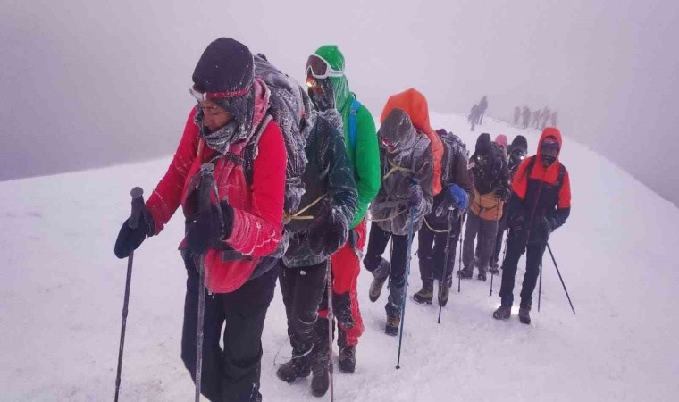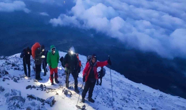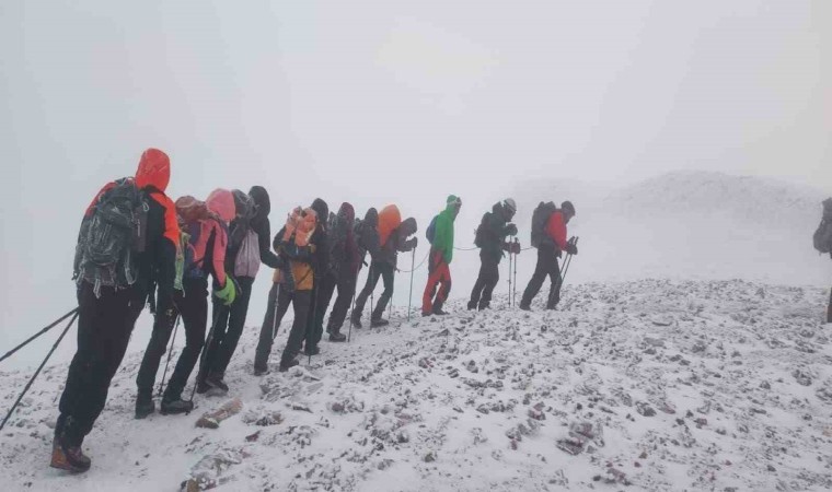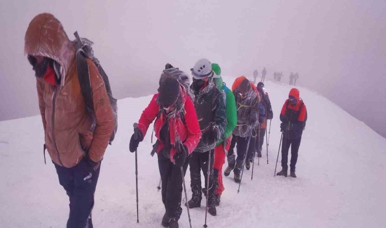 Dünyanın birçok ülkesinden ve Türkiye’nin farklı bölgelerinden gelen dağcılar, Doğubayazıt’ta hazırlıklarını tamamlayarak tırmanışa geçti. 4 bin 200 rakımda kamp alanında aniden bastıran yoğun kar yağışı ve fırtına dağcıların tırmanışını zorlaştırmasına rağmen zirveyi başarıyla tamamladı.