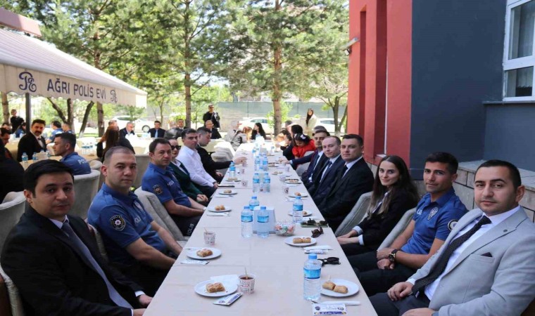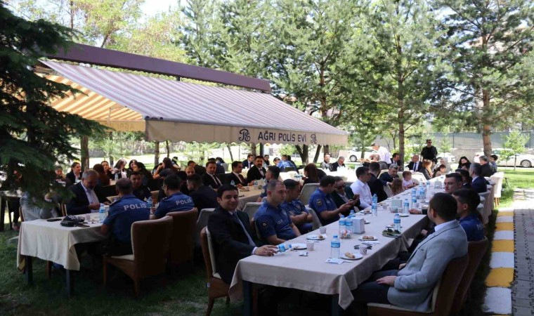 Ağrı İl Emniyet Müdürü Yılmaz İpar ve eşi Beste İpar, Kurban Bayramı dolayısıyla düzenlenen bayramlaşma programında emniyet personeliyle bir araya geldi.