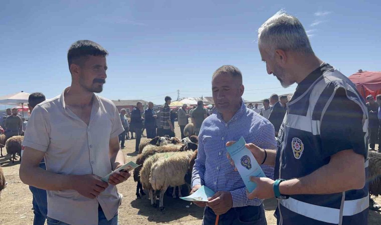 Ağrı’da kurban pazarlarının kurulmasından itibaren aralıklarla hayvan pazarına giden polis ekipleri, vatandaşlara dolandırıcılık ve sahte para konusunda duyarlı olmaları için uyarılarda bulundu.