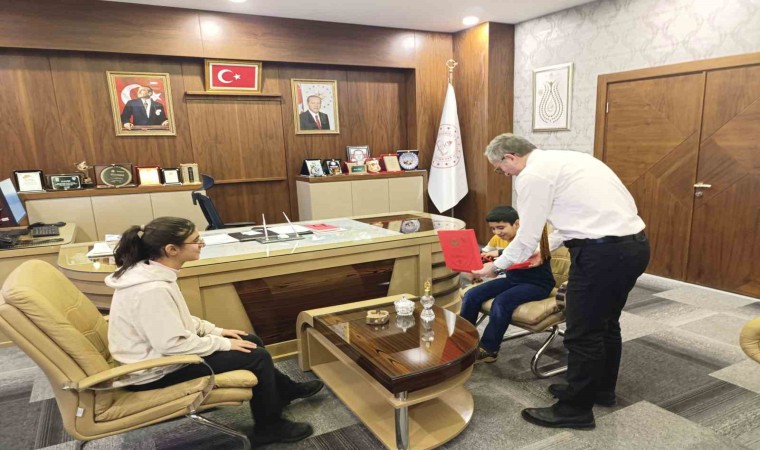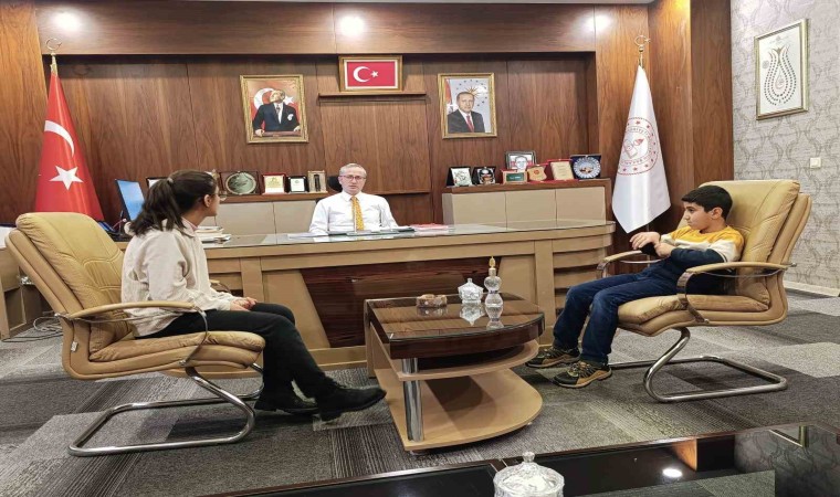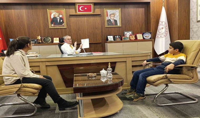Ağrı İl Milli Eğitim Müdürü Hasan Kökrek, kendisiyle tanışmak isteyen Alparslan Ortaokulu öğrencisi Eylül Irmak Aydın ve Piri Reis Ortaokulu öğrencisi Yusuf Emre Aydın’ı makamında misafir etti. Kökrek, 8. sınıf öğrencisi Eylül Irmak Aydın’ın gönüllü velisi oldu.