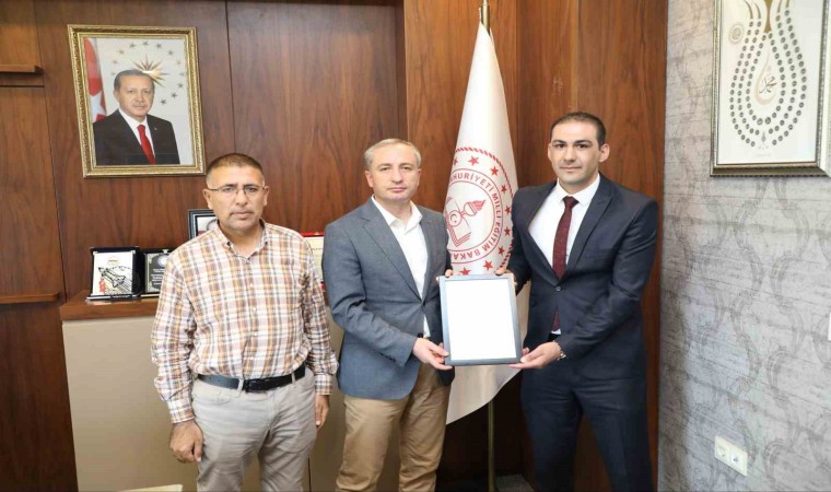Ağrı İl Milli Eğitim Müdürü Hasan Kökrek, STEM faaliyetlerine katkı sunmak için kurs ve eğitimler sonucu Scientix elçisi unvanını alan Ar-Ge biriminde proje koordinatörü olarak görev yapan Nesim Zariç’e ’Avrupa Okul Akademisi Kurs Tamamlama Sertifikası’nı takdim etti.