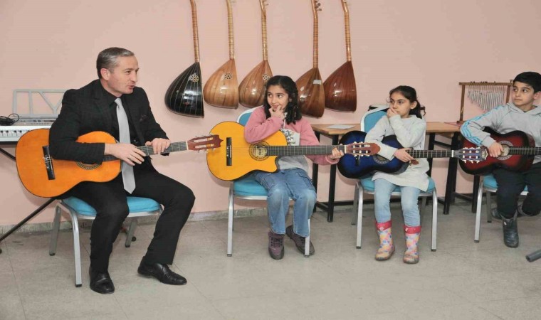 Ağrı İl Milli Eğitim Müdürü Hasan Kökrek, "Yetenek Sende Keşfet" projesi kapsamında enstrüman eğitimi alan öğrencileri ziyaret etti. Kökrek, gitar çalarak öğrencilerin şarkılarına eşlik etti.