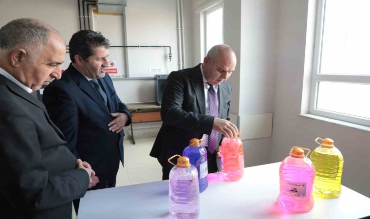 Ağrı Valisi Mustafa Koç, Türkiye Odalar ve Borsalar Birliği (TOBB) Mesleki ve Teknik Anadolu Lisesini ziyaret ederek, okulda üretilen hijyen malzemeleri hakkında bilgi aldı.