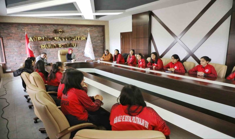 Ağrı Valisi Mustafa Koç’un eşi Neslihan Gül Koç, Türkiye Futbol Federasyonu Kadınlar 3. Ligi’nde lider olan Ağrı Aile ve Sosyal Politikalar Gençlik ve Spor Kulübü Kız Futbol Takımı oyuncularıyla bir araya geldi.