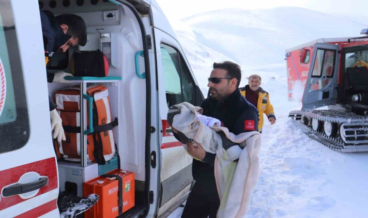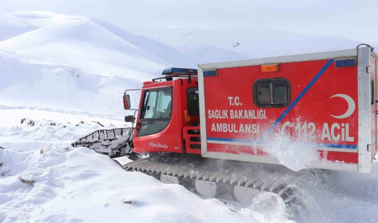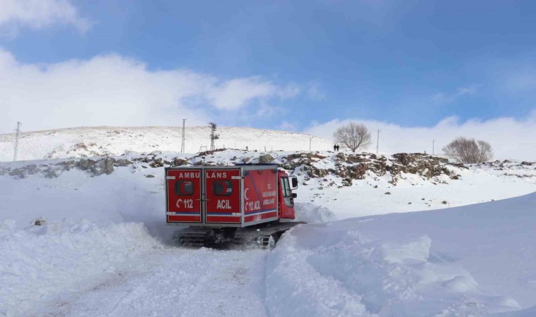 Ağrı’da kar ve tipi nedeniyle yolu kapanan köyde rahatsızlanan 4 kardeş, paletli ambulansla kurtarıldı.