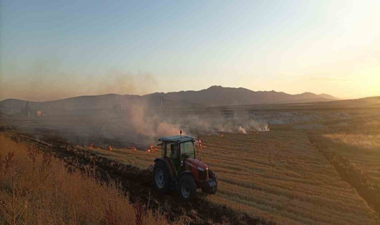 Ağrı’nın merkeze bağlı Dambat köyünde bulunan tarlada çıkan yangın tarlayı küle çevirdi