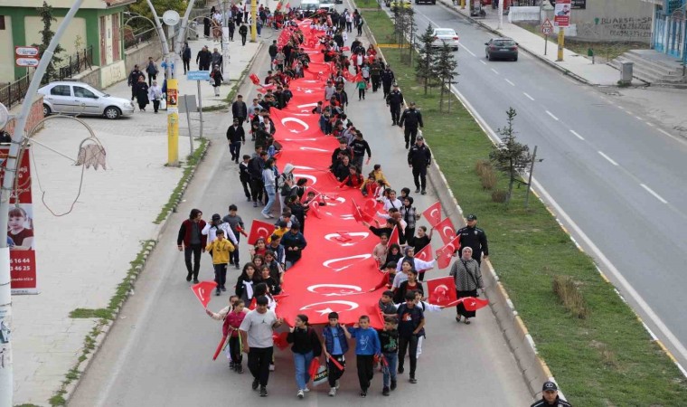 Cumhuriyet Caddesinde başlayan Yürüyüş, 15 Nisan Spor Salonunda sona erdi. Yürüyüş korteji önünde yürüyen gençler dev bir Türk Bayrağı taşıdılar.