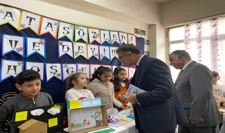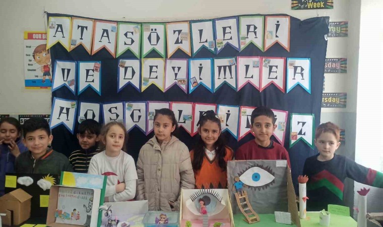 Ağrı Merkez Şeref Saraçoğlu İlkokulu, Milli Eğitim Bakanlığının (MEB) başlattığı "Dilimizin Zenginlikleri" projesi kapsamında "Atasözleri ve Deyimler" konulu bir sergi açtı.