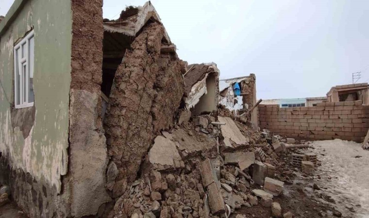 Doğubayazıt’ta toprak bir evin damı çöktü. Ev sahibi, çöken damın altında kalmaktan son anda kurtuldu.