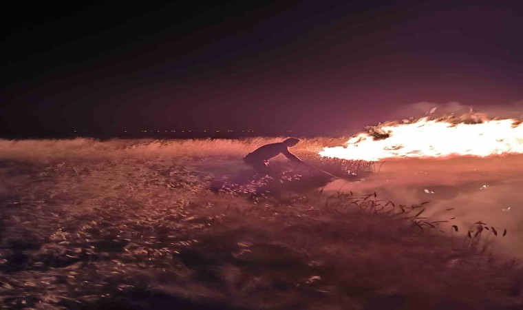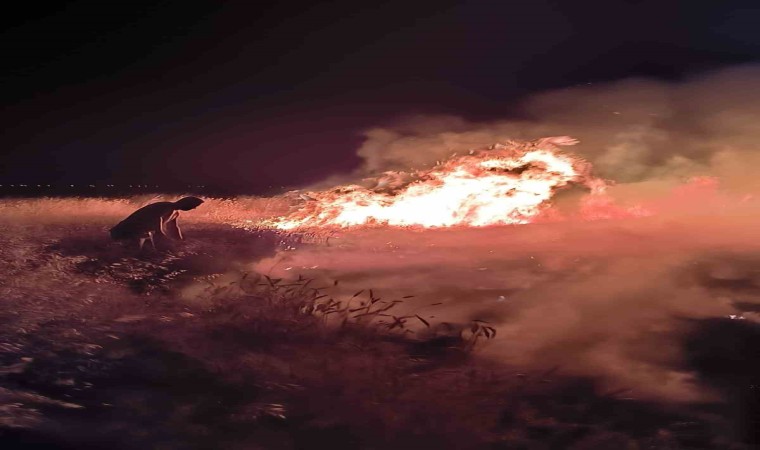 Ağrı’da gece saatlerinde meydana gelen yangında bir tarla küle döndü.