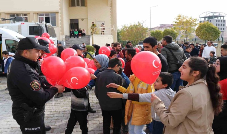 Ağrı’da, Cumhuriyet’in 100’üncü yıl dönümü dolayısıyla İl Emniyet Müdürlüğünce düzenlenen etkinlikte, öğrenciler polisin kullandığı araçları yakından tanıma fırsatı buldu.