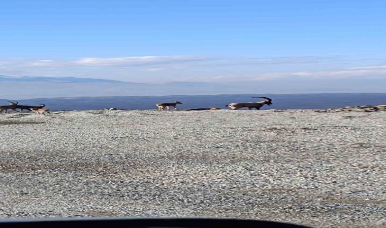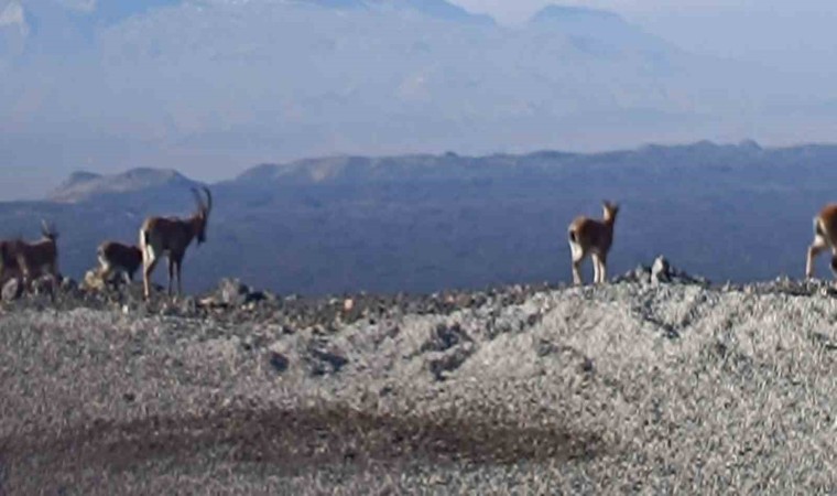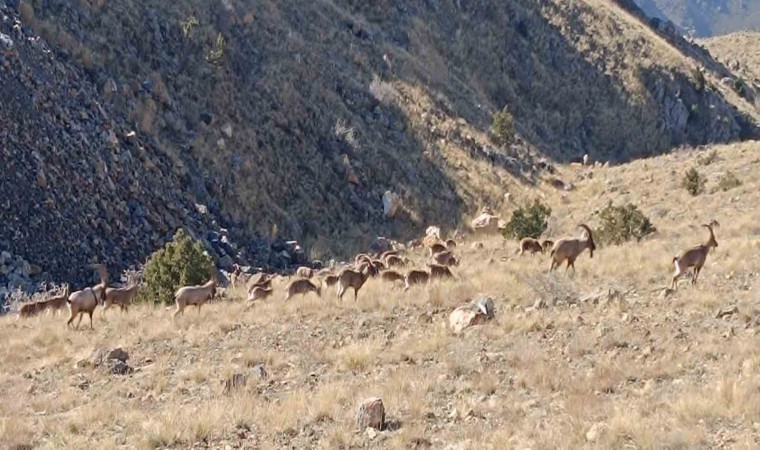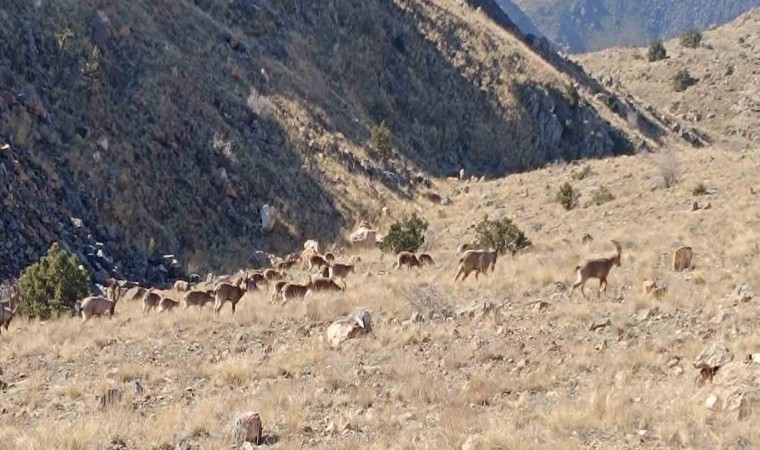 Yüksek dağ kesimlerinin karla kaplanması nedeniyle eteklerde bulunan otlaklarda otlandıkları görülen dağ keçileri, vatandaşlar tarafından fark edilince cep telefonu kameraları ile kayda alındı.