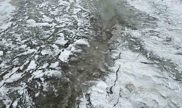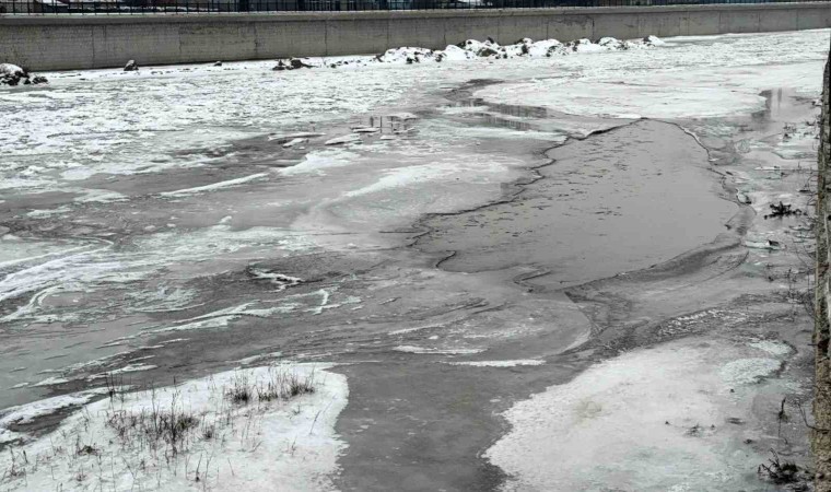 Bir süredir Ağrı’yı etkisi alan dondurucu soğuklar nedeniyle Murat Nehri dondu.