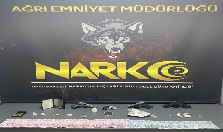 Ağrı İl Emniyet Müdürlüğü Narkotik Suçlarla Mücadele Şube Müdürlüğünce sokak satıcıları takibine yönelik Ocak ayından beri devam eden 4 aylık soruşturma doğrultusunda 26 ara yakalama yapıldı. Daha sonra tespit edilen 17 sokak satıcısının yakalanmasına yönelik Doğubayazıtta alınan operasyon kararı ile 16 ayrı adrese 70 ekip, 223 personel, 14 özel harekat ekibi, 3 narkotik dedektör köpeği ile eş zamanlı operasyon düzenlendi. Operasyonlarda 16 sokak satıcısı gözaltına alındı. Ayrıca adreslerde yapılan aramalarsa 6,61 gram esrar, 97,5 gram metamfetamin, 3 adet hassas terazi, 4 adet 9 mm tabanca, 4 adet şarjör, 37 adet 9 mm fişek ve suçtan elde edildiği değerlendirilen 45 bin 800 lira para ele geçirildi.