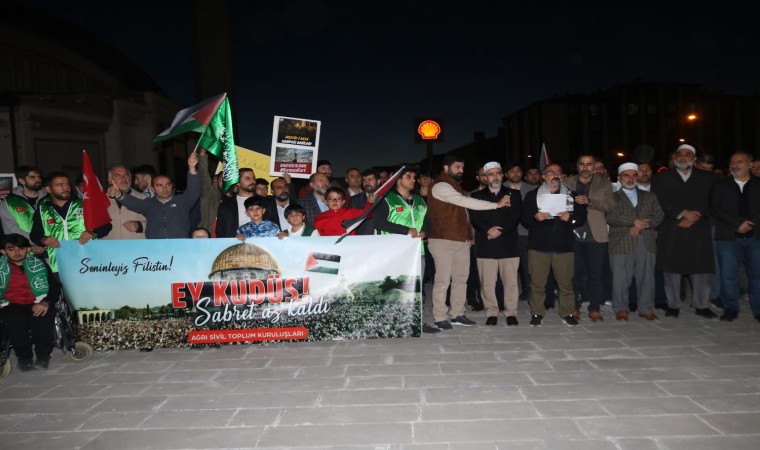 Ağrı Sivil Toplum Kuruluşları Platformu tarafından Ulu Camii Avlusunda düzenlenen basın açıklamasına, Ağrı halkı, kanaat önderleri, siyasi parti temsilcileri ve STK üyeleri katıldı. Açıklama sırasında “Mescid-i Aksa onurumuzdur”, “Yaşasın küresel intifada”, “Mescid-i Aksa sahipsiz değildir”, “Ey Kudüs sabret az kaldı” yazılı dövizler taşındı. Katılımcılar, İsrail’in saldırılarını protesto etmek için sık sık tekbir getirdi.