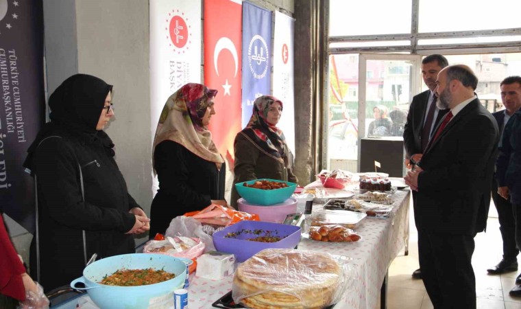 Kağızman Caddesinde açılan hayır panayırında gönüllü kadınların hazırladığı ev yemekleri satışa sunuldu.
