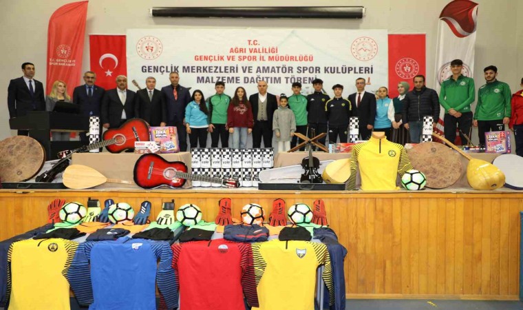 Ağrı’da Gençlik ve Spor Bakanlığı tarafından gönderilen spor ve sanat malzemeleri, gençlik merkezleri ve amatör spor kulüplerine dağıtıldı.