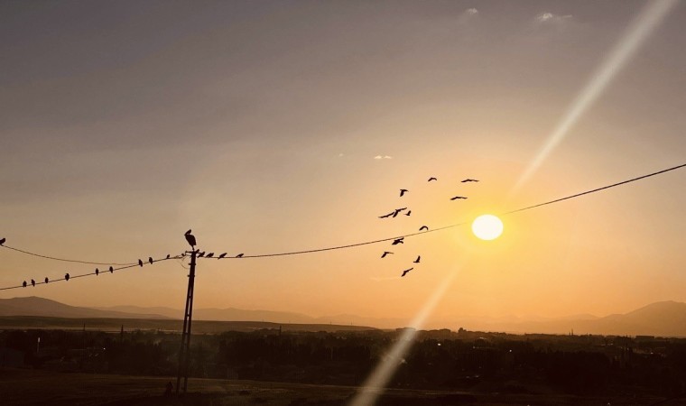 Ağrı’da gün batımıyla birlikte kızıla bürünen gökyüzü görenleri hayran bıraktı.