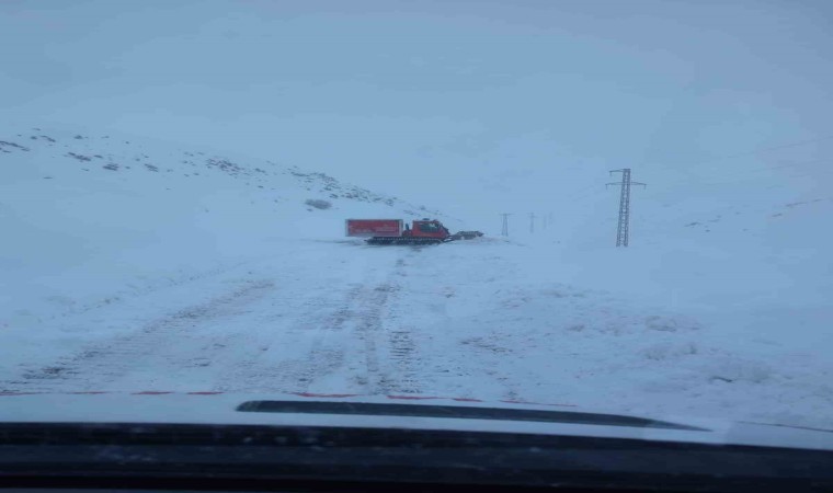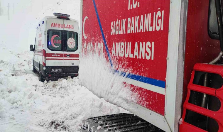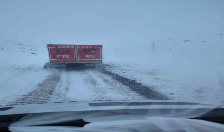 Ağrı’da kar ve tipi nedeniyle yolu kapanan köyde mahsur kalan hamile kadın, paletli ambulansla hastaneye yetiştirildi.