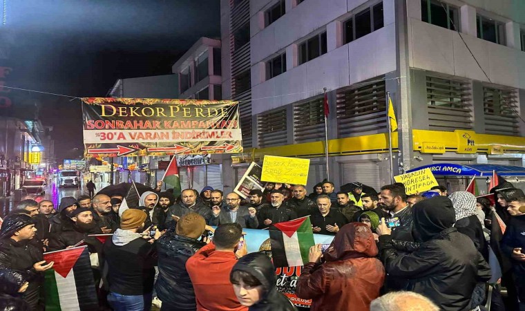 Ağrı’da, İsrail’in Gazze’deki Ehli Arap Hastanesi’ne düzenlediği saldırıyı protesto etmek için Cumhuriyet Caddesi’nde toplanan vatandaşlar, İsrail aleyhine sloganlar attı.