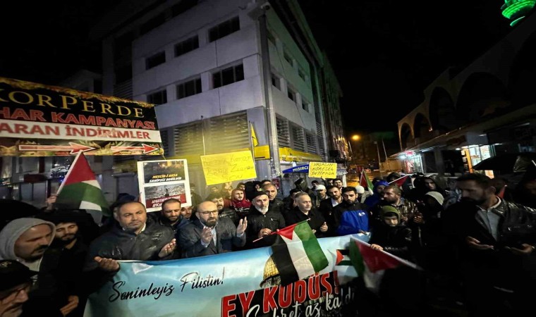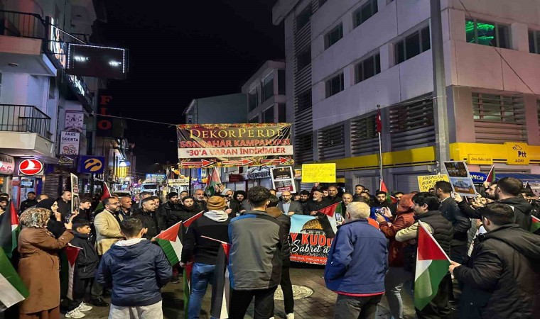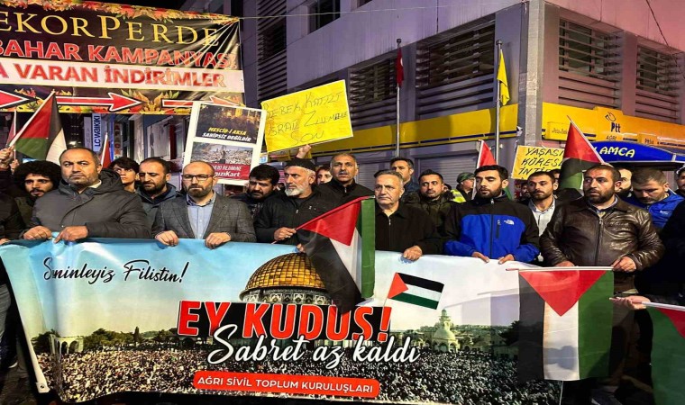 Ağrılılar, ellerinde Türk ve Filistin bayraklarıyla Cumhuriyet Caddesi’nde yürüyüş yaptı. Yürüyüş sırasında “Katil İsrail Filistin’den defol”, “Filistin yalnız değildir”, “Kahrolsun İsrail” şeklinde sloganlar atan grup, İsrail’in Gazze’ye yönelik saldırılarını kınadı.