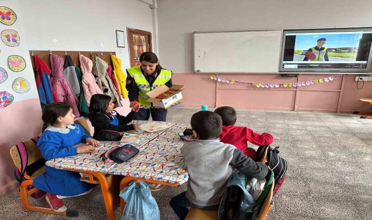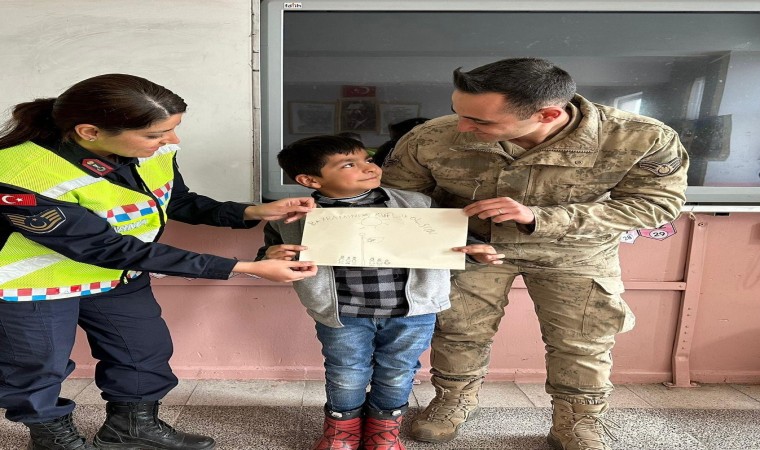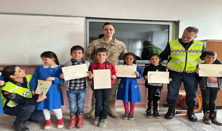 Ağrı’da, jandarma ekipleri bayram tatili öncesi minikleri okulunda ziyaret ederek trafik eğitimi verdi.