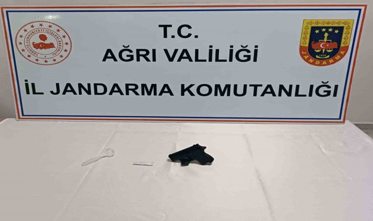 Edinilen bilgiye göre, İl Jandarma Komutanlığı ekipleri Patnos ilçesinde yol kontrolü ve emniyeti uygulaması sırasında bir araçta yaptıkları aramada 5 gram metamfetamin, 1 adet uyuşturucu kullanma aparatı ve 1 adet kurusıkı tabanca buldu. Araçtaki 2 kişi gözaltına alındı.