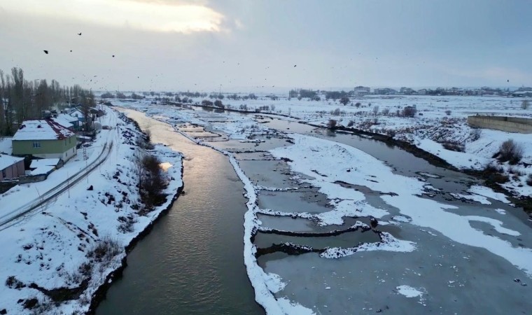 Ağrı’da dün yağan kar yağışıyla oluşan