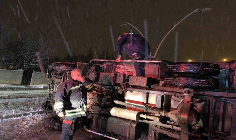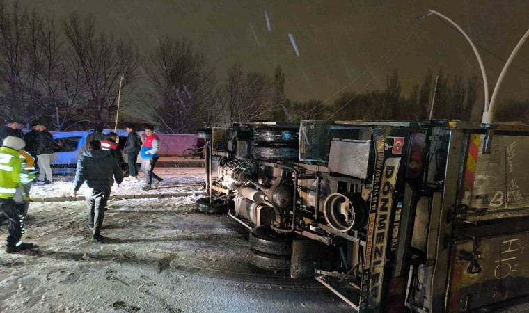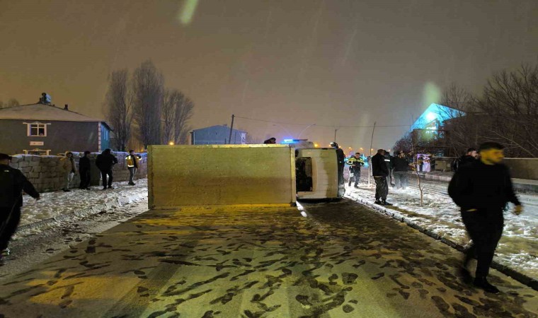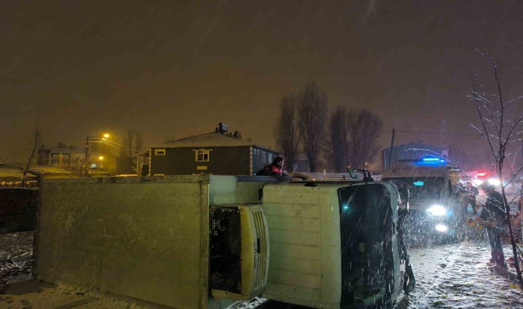 Ağrı’da yoğun kar yağışı nedeniyle meydana gelen kazada bir kamyonet devrildi, sürücü ölümden döndü