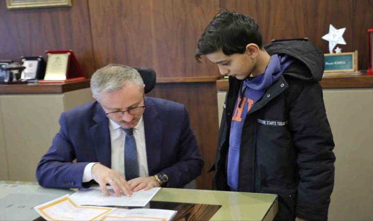 Yıldız ise Kökrek’e teşekkür ederek, "Hasan müdürümü çok seviyorum. Onun çalışmalarını takip ediyorum. Onun gibi Milli Eğitim Müdürü olmak istiyorum. Ona söz veriyorum, çok çalışacağım ve başarılı olacağım" diye konuştu.