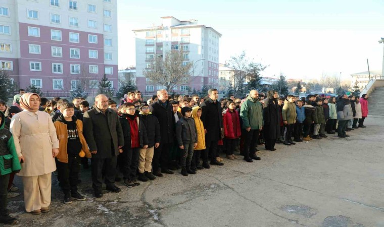 Şehit Uzman Çavuş Tuncer Doğan İmam Hatip Ortaokulu’nda gerçekleştirilen törene Ağrı İl Milli Eğitim Müdürü Hasan Kökrek, Milli Eğitim Müdür Yardımcısı İshak Hasanoğlu, şube müdürü Süleyman Çetin, okul müdürü, öğretmenler ve öğrenciler katıldı. Saygı duruşunun ardından İstiklal Marşı’nı okuyan öğrenciler, şehitler için dua etti.